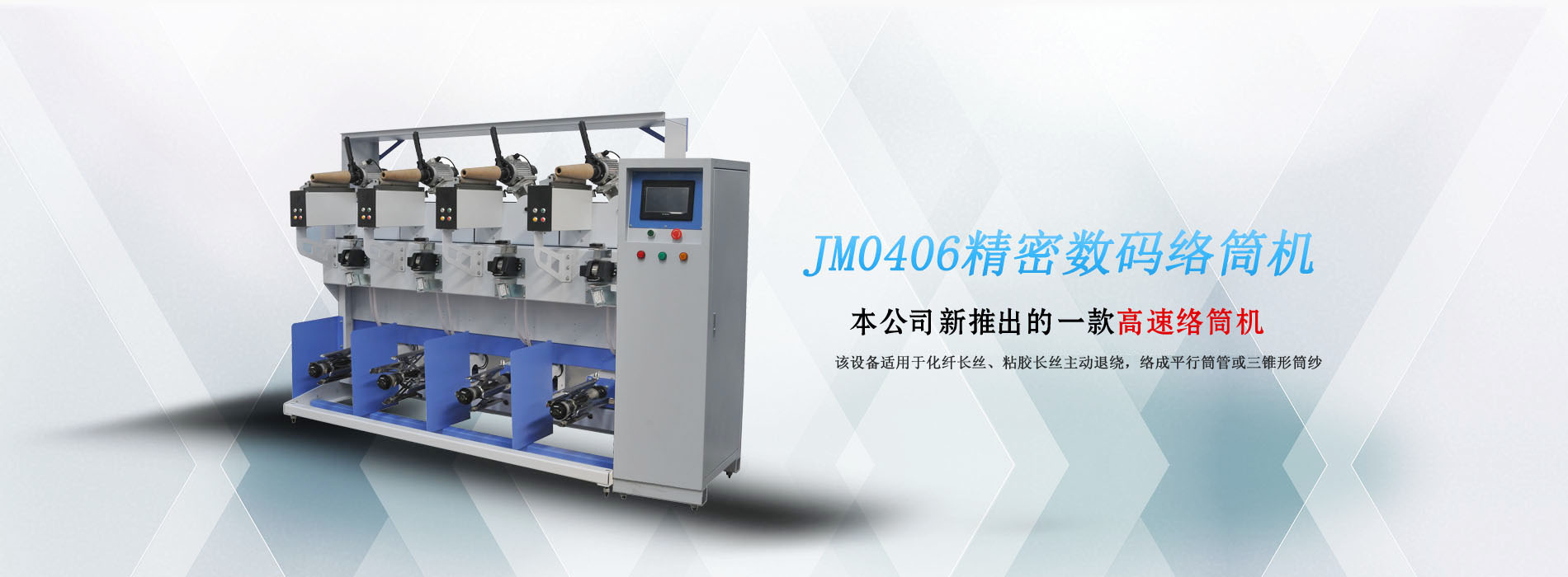 JM0401精密數(shù)碼絡(luò)筒機(jī)是本公司新推出的一款高速絡(luò)筒機(jī)。該設(shè)備適用于化纖長(zhǎng)絲、蠶絲、粘膠長(zhǎng)絲的松式絡(luò)筒及包覆并紗倒筒。